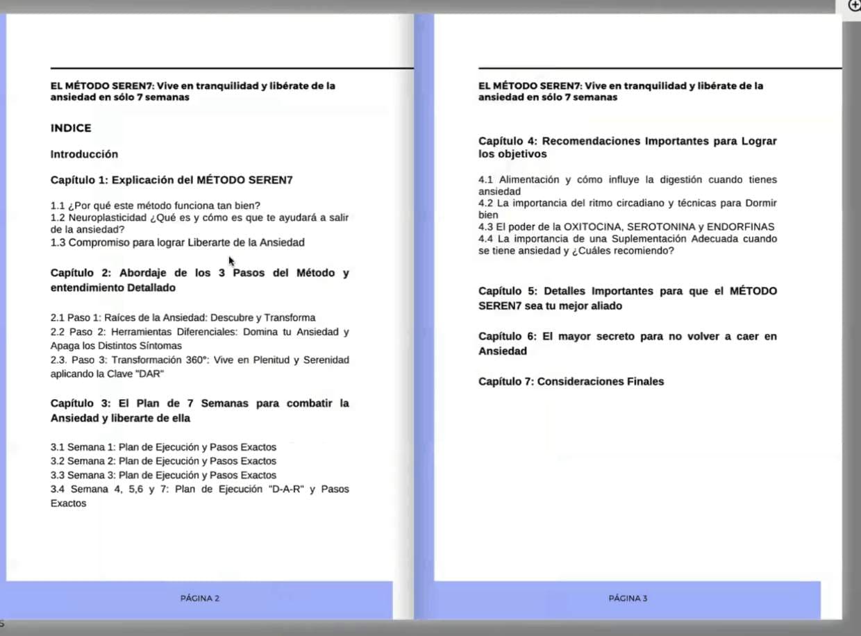 Todo este contenido está organizado de manera clara y fácil de seguir, permitiéndote llevar a cabo el proceso de 7 semanas, aunque sean 3 pasos en cómo dividí el metodo exacto, estos serán aplicados en un proceso de 7 semanas para que sea realmente efectivo, ya que en cada paso hay varios ejercicios, técnicas y estrategias probadas que aplicarás y comprobarás los resultados.