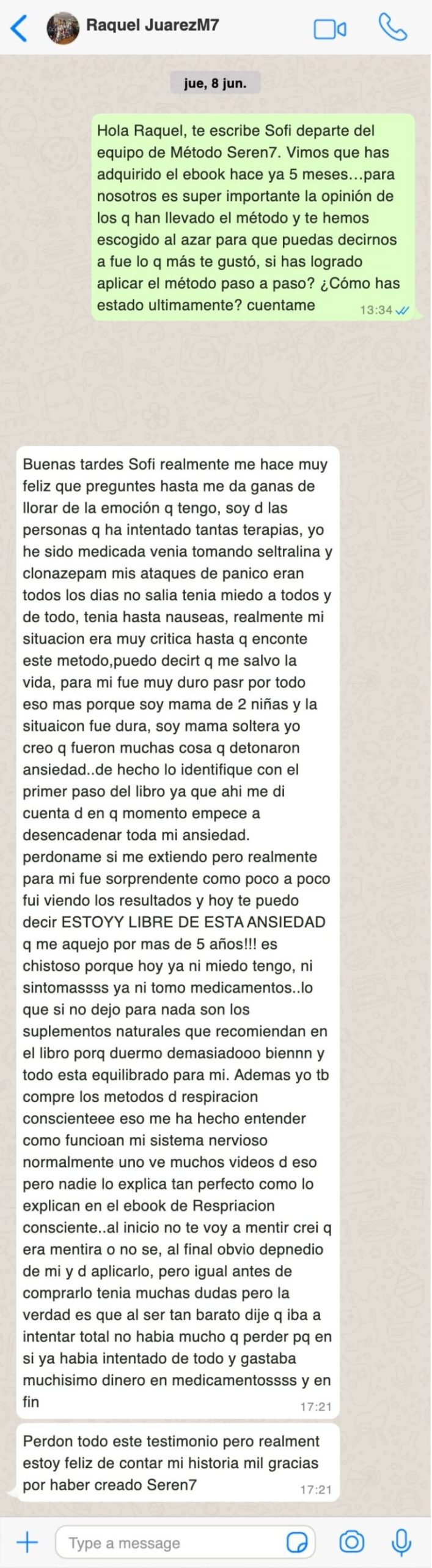 Mi e-book «El Método Seren7: Vive en tranquilidad y libérate de la ansiedad en sólo 7 semanas» te guiará paso a paso en el proceso.